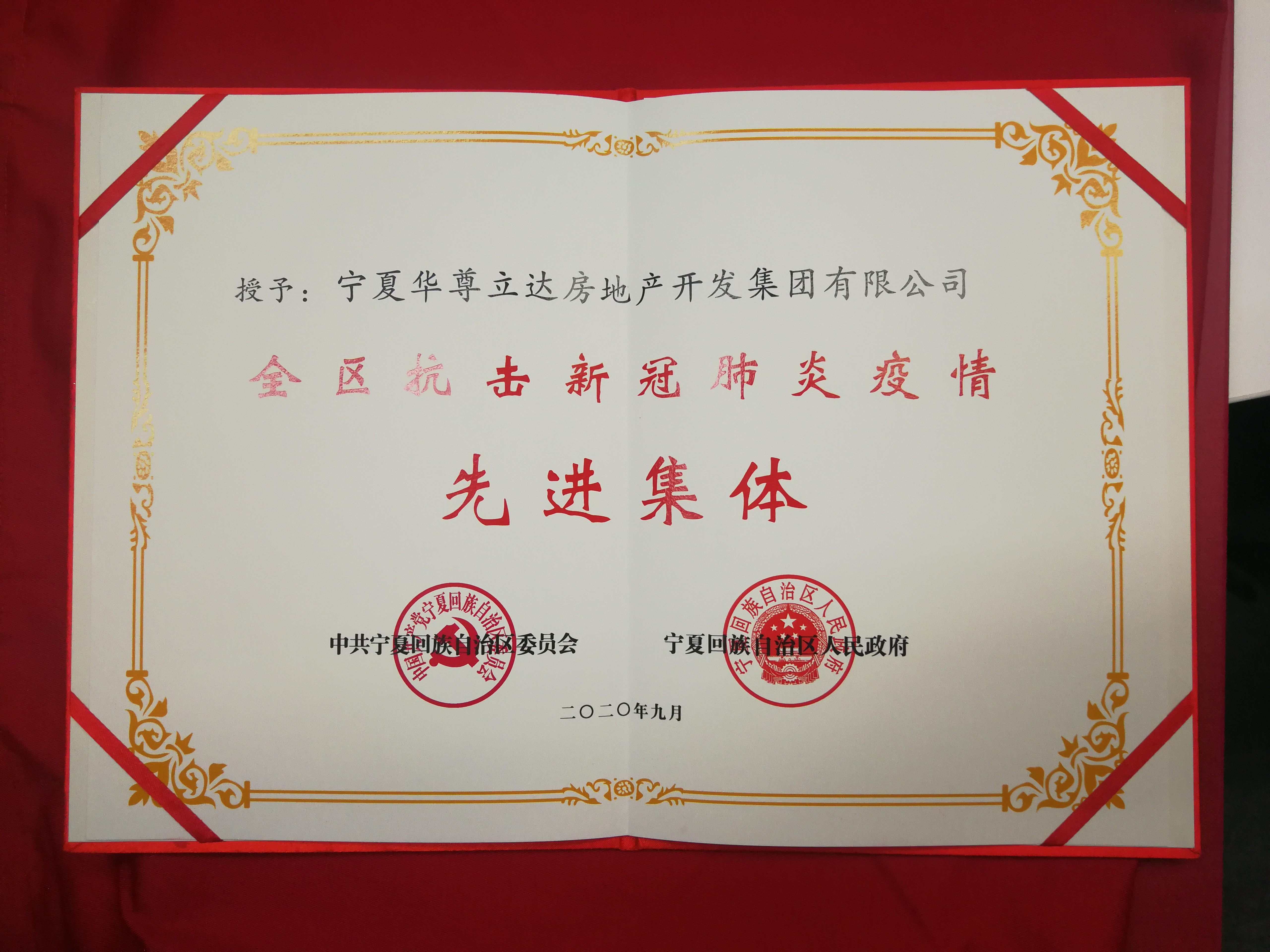 華尊立達(dá)集團(tuán)榮獲自治區(qū)頒發(fā)抗擊新冠肺炎疫情榮譽稱號