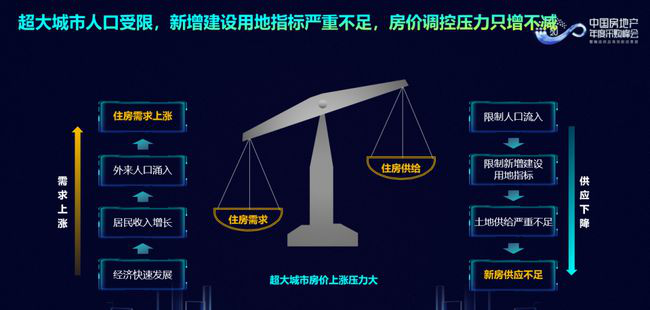 我國的經(jīng)濟發(fā)展強調(diào)雨露均沾的模式,勢必導致經(jīng)濟發(fā)達的城市房價還是會有巨大的上漲壓力,但是房價必須得控住,所以必然會招至更加嚴厲的政策調(diào)控,這是我們得出的結(jié)論。一方面,對于超大城市來說,由于經(jīng)濟發(fā)展快所以居民收入在提高,不斷吸引外來人口涌入,導致住房需求上漲,所以房地產(chǎn)的“供”有些不應(yīng)“求”,是所有發(fā)達城市面臨的問題。另一方面,超大城市人口受限,新增建設(shè)用地指標嚴重不足,勢必導致新房供應(yīng)不足房價上漲壓力增大,所以必然也會有更加嚴密的政策調(diào)控。現(xiàn)在已經(jīng)沒有機會跟大家探討房價該不該漲了,就是不能漲,這已經(jīng)是一個前提條件,這是所有從業(yè)者面臨的環(huán)境。