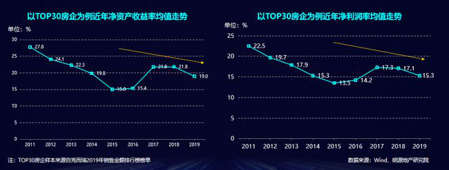 一是凈利潤率,但凈利潤率遭遇到了土地紅利下滑的沖擊。地價高位維穩(wěn),限價政策仍是主流,利潤空間被擠壓。
